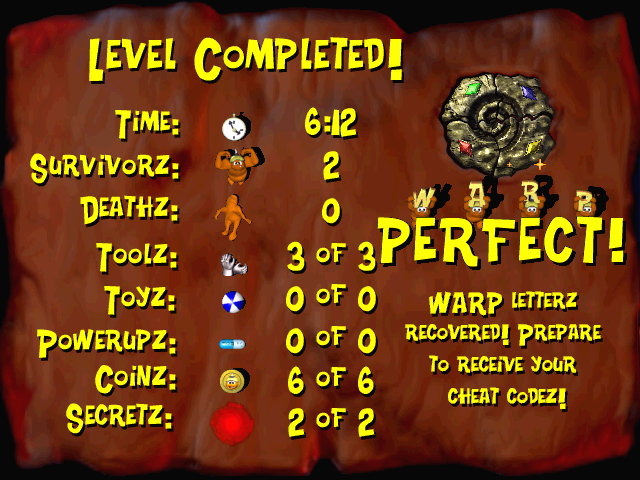 Cheatz for completing all 4 levelz: