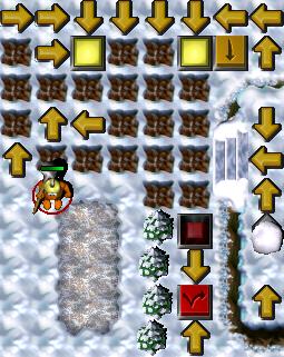 | All Gruntz: | Send your four Gruntz to kill the Shovel Grunt. An easy way to do this is to move all the Gruntz barely out of 'sight' of the enemy Grunt, then move one in to the left of the grunt, one to the top, and the other two to the right. If you just send all of them to fight him without giving the first two direct orders to move first, only two or three will end up fighting the enemy and it will be harder to keep them all alive. Once you have killed that Grunt, have one Grunt step on the to lower the z, and give the wounded Gruntz Zap Cola.It's easiest if all the Gruntz are as healthy as possible, and three need to be over half health in order to complete the level. (I had no problem restoring all four Gruntz to full health, with the two canz of Zap Cola, and the two bottlez of Zap Cola.) After the Gruntz are healed up, move your least healthy Grunt to step on one of the leading up. When the first Grunt has moved about four spaces, send another Grunt after it. The timing on this doesn't matter much, but if you send Gruntz on the arrow path all at once, they could walk on each other or end up on the wrong side. It should end up that two Gruntz are on one side and two Gruntz are on the other side. After this happens, send them to the z that they are near and this will lower two z lower in the level, near the Warpstone. | |||||||||