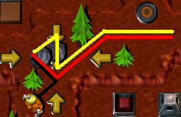 Shovel fillz in the (see the red line in Figure 1) and Grunt #5 quickly runz across the (see the Green line) before the enemy Digger digz it up again. He runz to use the Megaphone to call for a Bomb. Then go back and 'take on' that Digger! (Shovel will lend his tool to the party ... judicously, using 'hit and run' tacticz.) |