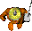 You have determined that the big ugly enemy Grunt is a typical bully.Knowing you have a more powerful weapon than he possesses, he wantz no part of you. So you let him have a round ... and then have to dodge a missile coming your way. Employing 'Hit & Run' tacticz, you avoid the pink missilez and then come back to finish off the enemy Grunt .You retreat to a place where you cannot be pushed around, and let your buddy with the GooberStraw take care of the rest of the enemy Gruntz .Then you head south and do a little "one on one" with the enemy Grunt down there.You may be able to do more long-range damage, but it may not be wise to get carried away with your power. Why don't you check out the GruntzMachine for something more useful? |