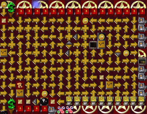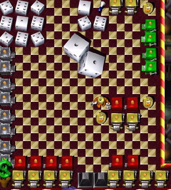 In plain sight in the path of a Rolling 8-Ball travelling over three pairz of Orange Up/Down Switchez ![]() , Green Toggle Switchez and Red Toggle Switchez . |