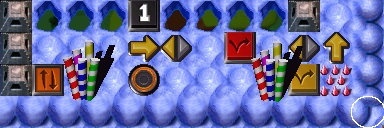 First, you down the Bottle of Zap Cola Time to start sucking! The first two Goo Puddlez ![]() are in plain sight.With two in the Goo Well, you trek back to where you know there is a Blue Goo Puddle .If you played wisely, there are five more Goo Puddlez ![]() ![]() ![]() ![]() you suck up.(You may enter Gruntz #3 and #4 into the game now, and start using them.)You make the long trek back toward the SPz , where you saw four more Goo Puddlez that you couldn't reach ... perhapz there will be a way to get to them and add them to the Goo Well.When some SPz are lowered , you enter and move right ... and start sucking.(You may enter Grunt #5 into the game now, and start using him.)You step on the STS , lowering some SPz to allow Grunt #3 to move to the PMGS .When some SPz are lowered , you exit and move north to stand on a YHS below and between two Two-Way Arrowz ![]() ![]() (TWA), changing both to point the opposite wayz ![]() ![]() .