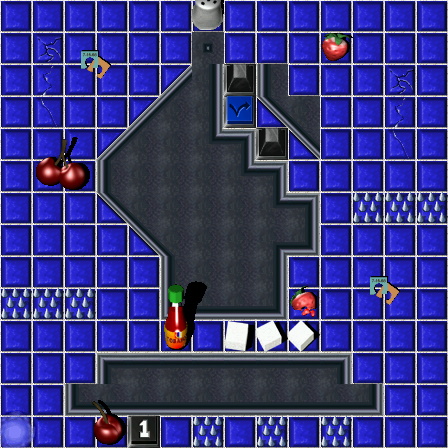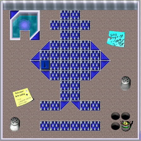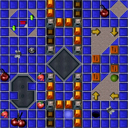 | Gruntz (intended to be only one until the next to the last move) In every square the primary objective is to find the Blue Wormhole (BW) and exit. |