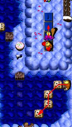 Go through the teleporter and start breaking thingz, such as the green frosted cupcake to the east (the first pink frosted cupcake yieldz a Coin (Coin #6) and at least one each of the other five cupcakez     ) and join GooberStraw Grunt #1.