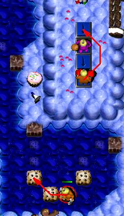 Get him to follow you back to your CheckPoint Switch and when he lightz his fuse ... dodge(!) and he will break three cupcakes   for you (one containing a TimeBomb , which breakz two more cupcakez  (one containing a TimeBomb ) and a Giant Cupcake).