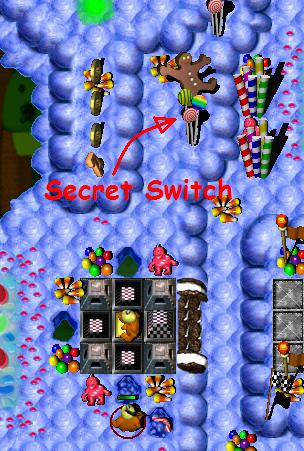 Switch to GooberStraw Grunt #1 and press the Secret Switch (Secret #1), then (when it is safe) return to the Green Hold Switch .