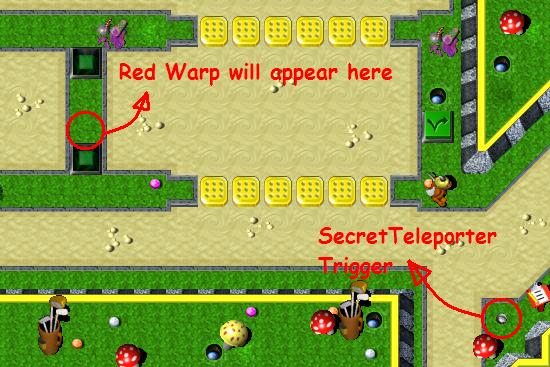 Your ShovelGrunt digs up every mound he can ( there is FOUR of them ), and after that - takes Springz and picks up coin. Jump next to the top mushroom and take a coin. Go to the right, through a toggling bridgez. Go ahead, press the GreenToggleSwitch and go to the Wingz. Now, it's time to find SecretTeleporterTrigger! With your wingz, come back to the GreenToggleSwitch to the right ( try not to use a Wingz ). Activate a trigger, enter a warp and, of course, collect coins and the R letter!
