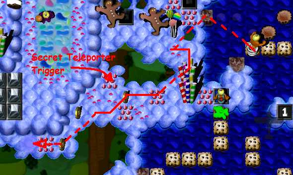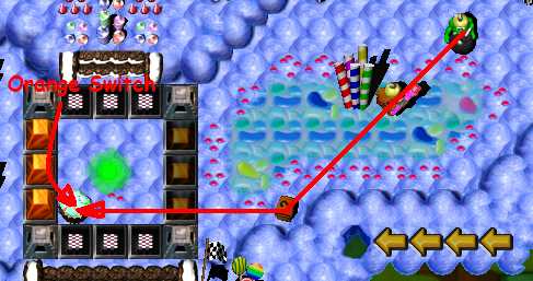 Now, SpringzGrunt jumps onto "island" with coins, where he loses his Springz. DO NOT TAKE SECOND SPRINGZ FROM RESOURCEZ YET!. First trigger Secret Teleporter! Now take backup Springz and jump into blue wormhole! He's landing onto island with Green Toggle Switch. He goes onto Blue Hold Switch, TimebomberGrunt gets out and SpringzGrunt follows him.