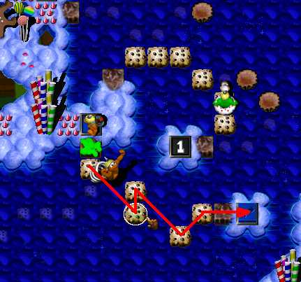 Both Gruntz pass RollingBalls maze. Timebomber Grunt takes ZapCola AFTER he will eliminate three BoxingGlovezGruntz ( by planting explosives near them ). Press first two Black One Time Switches. SpringzGrunt has to press last one: