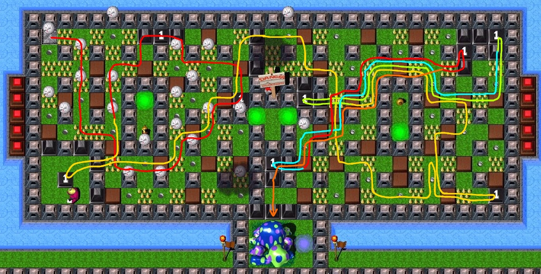 Easy ... all enemy Gruntz are imprisoned in Brickz and Construction Pyramidz ;you can avoid enemy Gruntz who would attack,and dispose of the onez that are simply an obstacle to getting to the next stage.There is no real threat to your health. |